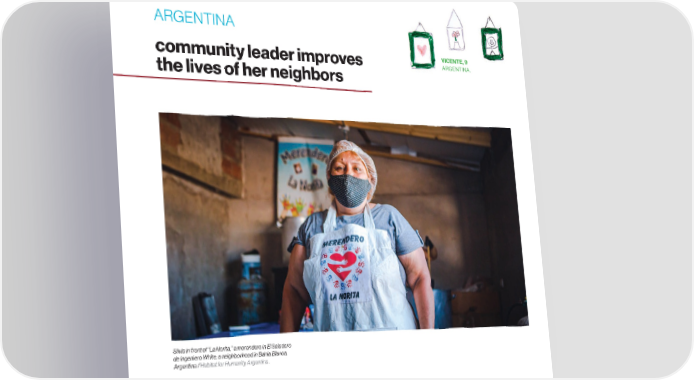 ARGENTINA VICENTE, 9 community leader improves ARGENTINA. the lives of her neighbors Silvia in front of “La Norita,” a merendero in El Saladero de Ingeniero White, a neighborhood in Bahia Blanca, Argentina / Habitat for Humanity Argentina. PAGE. 14 habitat.org/lac