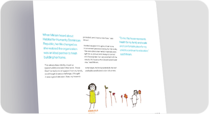 When Miriam heard about protected, and I have a nice floor,” said “To me, this house represents Habitat for Humanity Dominican Miriam. health for my family and a safe Republic, her life changed as Habitat’s support throughout their home and comfortable place for my she realized the organization improvement process was key for this family. child to continue his education,” “We were able to learn which materials were was an ideal partner to finish right for us, and we were always in contact said Miriam. building her home. with the engineer. I am very satisfied with the results. My house is more beautiful and safer now,” said Miriam. “I’ve always been thrifty; I look for opportunities and don’t fear work. Thank In the future, the family wants to 昀椀x the roof God I’ve had a lot of support from my family, and build a small store to start a business. so although it was a challenge, I thought it was a good decision. Now, my house is ÁNGELES, 6 MEXICO. Annual Report - Latin America and the Caribbean, 2021 PAGE. 35