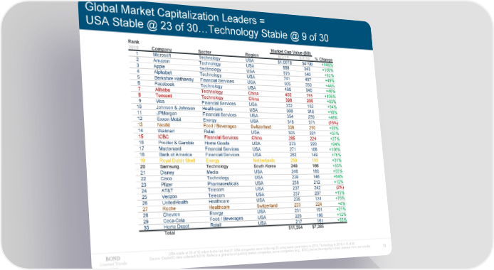 Global Market Capitalization Leaders = USA Stable @ 23 of 30…Technology Stable @ 9 of 30 Rank Market Cap Value ($B) 2019 Company Sector Region 6/7/19B 6/7/16B % Change 1 Microsoft Technology USA $1,007B $410B +146% 2 Amazon Technology USA 888 343 +159% 3 Apple Technology USA 875 540 +62% 4 Alphabet Technology USA 741 497 +49% 5 Berkshire Hathaway Financial Services USA 505 350 +44% 6 Facebook Technology USA 495 340 +46% 7 Alibaba Technology China 402 195 +106% 8 Tencent Technology China 398 206 +93% 9 Visa Financial Services USA 372 192 +94% 10 Johnson & Johnson Healthcare USA 368 318 +16% 11 JPMorgan Financial Services USA 354 239 +48% 12 Exxon Mobil Energy USA 316 371 (15%) 13 Nestlé Food / Beverages Switzerland 306 230 +33% 14 Walmart Retail USA 303 221 +37% 15 ICBC Financial Services China 285 224 +27% 16 Procter & Gamble Home Goods USA 273 220 +24% 17 Mastercard Financial Services USA 271 106 +156% 18 Bank of America Financial Services USA 262 149 +76% 19 Royal Dutch Shell Energy Netherlands 259 198 +31% 20 Samsung Technology South Korea 249 166 +50% 21 Disney Media USA 248 160 +55% 22 Cisco Technology USA 239 146 +64% 23 Pfizer Pharmaceuticals USA 238 212 +12% 24 AT&T Telecom USA 237 242 (2%) 25 Verizon Telecom USA 237 207 +15% 26 UnitedHealth Healthcare USA 235 131 +79% 27 Roche Healthcare Switzerland 233 224 +4% 28 Chevron Energy USA 231 191 +21% 29 Coca-Cola Food / Beverages USA 220 196 +12% 30 Home Depot Retail USA 217 161 +35% Total $11,264 $7,385 USA stable at 23 of 30 refers to the fact that 21 USA companies were in the top 30 using same parameters in 2018. Technology in 2018 = 10 of 30. Source: CapitaIIQ data collected 6/7/19. Reflects a global list of publicly traded companies, some companies (e.g., ICBC) derive the majority of their revenue from one country. Internet Trends 13 2019