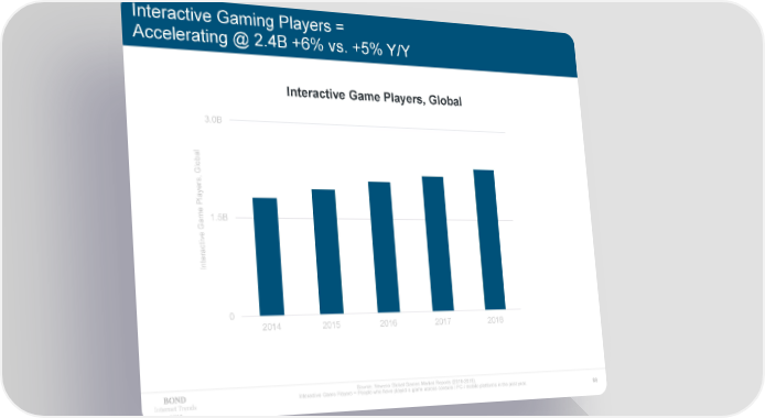 Interactive Gaming Players = Accelerating @ 2.4B +6% vs. +5% Y/Y Interactive Game Players, Global 3.0B obal l G ers, ay l P e 1.5B am G e v i eract nt I 0 2014 2015 2016 2017 2018 Source: Newzoo Global Games Market Reports (2016-2018). Interactive Game Players = People who have played a game across console / PC / mobile platforms in the past year. Internet Trends 89 2019