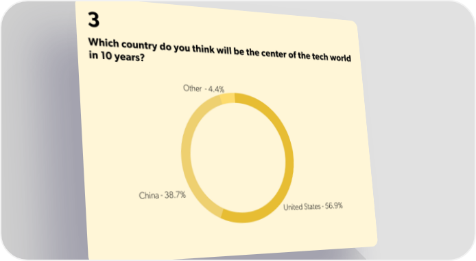 3 Which country do you think will be the center of the tech world in 10 years? State of Startups Page 17 Page 19
