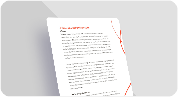 A Generational Platform Shift sets within certain commercial or governmental organisations may be tempting History them to master and personalise this technique to a degree hitherto unimagined. We We are at the start of a paradigm shift in software architecture: the wave of need organisational structures, data architectures, incentives and technologies that decentralised data networks. The movement we have seen build up over the past few neutralise this danger. Beyond eliminating the possibility that third parties behave years goes beyond Bitcoin and other crypto-assets, or even open source software and in an evil manner, the applications built upon these decentralised data networks will blockchains. Taking a broader view, it is the victory of peer-to-peer data networks based make possible a much more intimate bond of trust between each human individual on open standards, it reflects the power of properly aligned economic incentives, and it and the computing services delivered via an ever more complete envelope of devices. begins to harness the individual data centres in everyone’s pocket, desktop, car, living room and wrist. The movement is made possible by the proliferation of access to high A shift to more human-centric computing speed wireless broadband, rapidly maturing cloud-native software and a surge of recent While this trust layer has become a commonality between individuals and machine learning advancements. communities, it has proven difficult to create in human dealings with hardware devices and software applications. As the potential for software to serve us in Over the past few decades, technology architecture advancements have commoditised increasingly intimate and personalised ways expands, the imperative to deliver a operating systems and software packages by making them globally accessible via data trusted relationship increases. This becomes mandatory when one is sharing personal centres and cloud infrastructure. In this new wave, the data centre is being spread to genetic and physiological information, relying on algorithms to make split-second the very edge of the network and the data itself is being ‘open-sourced’, commoditised trade offs in moments of human peril or even when filtering the stream of news that into reusable trusted building blocks. Distributed users and machines interact with constitutes the factbase for our day to day decision-making. this data via a substrate of peer-to-peer networks. These peer-to-peer data networks become a ‘fabric’ that validates and curates information inputs without the need for In “Sapiens”, Yuval Harari also explores the idea that ultimately, on a historical third parties, while empowering individual users with their own data in a usable, secure scale, it is our ability to conceptualise abstract concepts through language and and scalable manner. share common beliefs that allowed strangers to cooperate and communities to rise. Technology now has the ability to abstract this trust, with the right incentives The Sovereign Individual encoded at the protocol level, allowing for cooperation and trade at a global scale. By empowering users with their own data, the decentralised data networks wave is breaking down the colossal data silos that have been the lifeblood, but increasingly the The forthcoming wave of decentralised data networks shifts us from zero-sum game untenable liability of today’s tech giants. Driven by central leaks such as Equifax’s data capitalism to the compounded benefits of collaborating communities. Perhaps a breach that cost 145m Americans their privacy or Facebook’s revelation that Cambridge good way to imagine such evolving coordination with minimal central control is the Analytica used personal data from 87m accounts and recently a further 50m logins technological feat that is the modern city. Distributed Autonomous Organisations were compromised, users are becoming weary of entrusting their personal data to built upon blockchain technology can achieve a balance of resilience & efficiency, these centralised silos. While Google quietly discarded its “Don’t be evil” motto1, here coordination & incentive on a whole range of new frontiers. The replacement of the at Fabric Ventures, we are much more interested in a new software architecture, where owner’s profit for a shared interest in the level of adoption of the network aligns 2 the motto becomes “Can’t be evil” : an architecture, in which all users control their data incentives across builders, service providers and users: the substitution of top down locally, therefore enabling the rise of the sovereign individual. As Yuval Harari posited at command and control power structures, with their high propensity for corruption, 3 a recent TED conference , totalitarianism is not the ugly force that is often depicted in with emergent structures. retrospect; instead, it presents itself as a seductively simple solution to the problems of the day that can seem foolish to resist. Harari argued that the concentration of data- 1 https://www.fastcompany.com/3056389/why-google-was-smart-to-drop-its-dont-be-evil-motto 2 https://medium.com/@muneeb/cant-be-evil-bc5ec16c6306 3 https://www.ted.com/talks/yuval_noah_harari_why_fascism_is_so_tempting_and_how_your_data_could_power_it?language=en 30 31