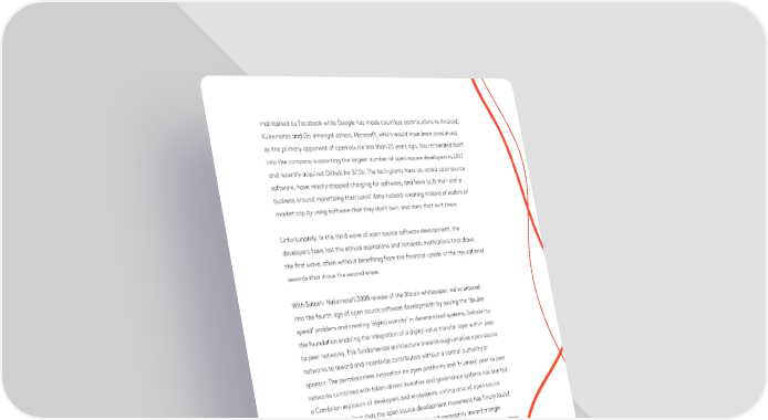 maintained by Facebook while Google has made countless contributions to Android, Kubernetes and Go amongst others. Microsoft, which would have been considered as the primary opponent of open source less than 20 years ago, has reinvented itself into the company supporting the largest number of open source developers in 2017 and recently acquired Github for $7.5b. The tech giants have co-opted open source software, have mostly stopped charging for software, and have built their entire business around monetising their users’ data instead: creating trillions of dollars of market cap by using software that they don’t own, and data that isn’t theirs. Unfortunately, in this third wave of open source software development, the developers have lost the ethical aspirations and romantic motivations that drove the first wave, often without benefiting from the financial upside or the reputational rewards that drove the second wave. Graphic 2: “The Four Ages of Open Source”, Fabric Ventures With Satoshi Nakamoto’s 2008 release of the Bitcoin whitepaper, we’ve entered To answer this question, we re-trace the history of open source software development into the fourth age of open source software development: by solving the ‘double in relation to the motivations & monetisation methods that accompanied it. At its very spend’ problem and creating ‘digital scarcity’ in decentralised systems, Satoshi lay beginning, the free software movement emerged amongst privacy & security hobbyists, the foundation enabling the integration of a digital value transfer layer within peer hackers and government entities that realised they could not commercialise their to peer networks. This fundamental architecture breakthrough enables open source software. The movement was heavily hinged on the ethical belief that software should networks to reward and incentivise contributors without a central authority or be in the open domain, available and accessible to all.sponsor. The permissionless innovation on open platforms and ‘trustless’ peer to peer networks combined with token-driven incentive and governance systems has started Developers realised that, beyond making software freely available, the open source a Cambrian explosion of developers and ecosystems uniting around open source model fundamentally improved the software development process. Communities projects. We believe that the open source development movement has finally found established themselves around projects and reputation layers started settling within its elusive ‘business model’ - a model which doesn’t necessarily reward a single these communities, generating exponential growth in contributors, maintainers and central entity, but instead fairly incentivises all contributors and participants, creating users. With the ability to widely distribute software across the world, developers started a distributed digital economy within each network. forming companies that added very thin monetisation layers onto wide distribution networks. In 1993 Bob Young incorporated the ACC Corporation that sold Linux and A paradigm shift driven by 3 mega trends Unix accessories and later became Red Hat. Around the same time, in 1994, Monty The success of the Web 2.0 Era over the past two decades has largely been Widenius (Advisor to Fabric Ventures & Founder at OpenOcean) began working on dominated by three fundamental technologies: Cloud, Social & Mobile. We’re MySQL which consolidated itself into the Linux, Apache, MySQL & Python, or ‘LAMP’ convinced that the coming decades of technical innovation will be driven by the 6 interplay between Edge Computing, Machine Learning and Decentralised Data: stack and became the world’s most popular database before being acquired by Sun Microsystems for $1 billion in 2008. the edge computing on swarms of devices capturing millions of data points, the advancements in machine learning algorithms ingesting this wealth of data & Over the past two decades, as large corporations realised the viability and benefits a substrate of decentralised data enabling secure & scalable communication, of open source development, the entire world has become reliant on open source coordination and fair incentivisation. software. The React and React-native JavaScript development tools are primarily 6 https://en.wikipedia.org/wiki/LAMP_(software_bundle) 34 35